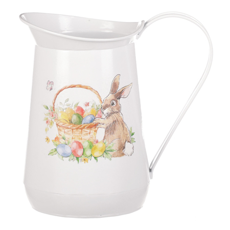 Kovová váza na květiny s velikonočním designem bude dokonalým doplňkem vaší sváteční výzdoby. S vyobrazeným zajíčkem a barevnými vajíčky v košíku na bílém podkladu, dodá prostoru tu pravou velikonoční atmosféru. Společně s jarními květinami v nich zasazenými, či naaranžovanými, bude vytvářet neodolatelný celek, který přinese svěžest, barevnost a optimismus. Květiny budou ve váze chráněné a zároveň vypadat fantasticky.