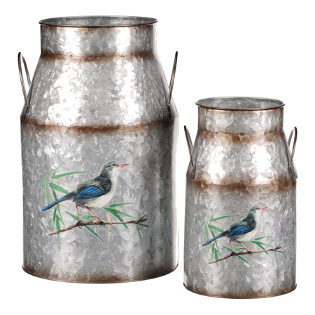 Kovová váza, sada 2ks, design s ptáčky.