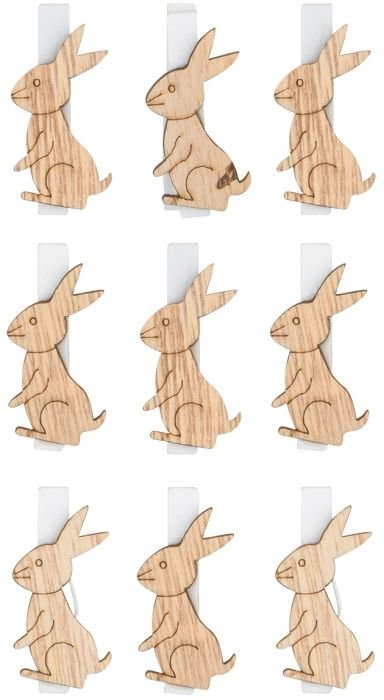Dřevěný zajíc na kolíčku. Zajíčky využijete k dekorování věnců, vazeb, dárků či přání. 9 kusů v balení. číst celé