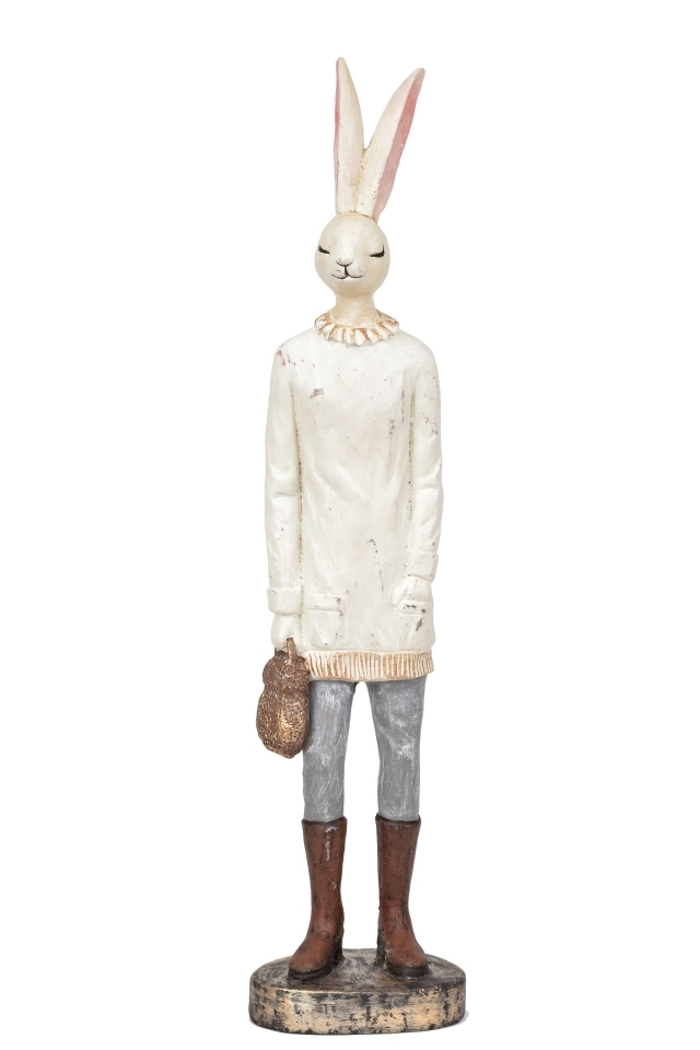 Velikonoční králík s taškou, výstřední dekorace, kterou jen tak někdo nemá. S výškou 40 cm bude vyčnívat mezi velkonočními dekoracemi.