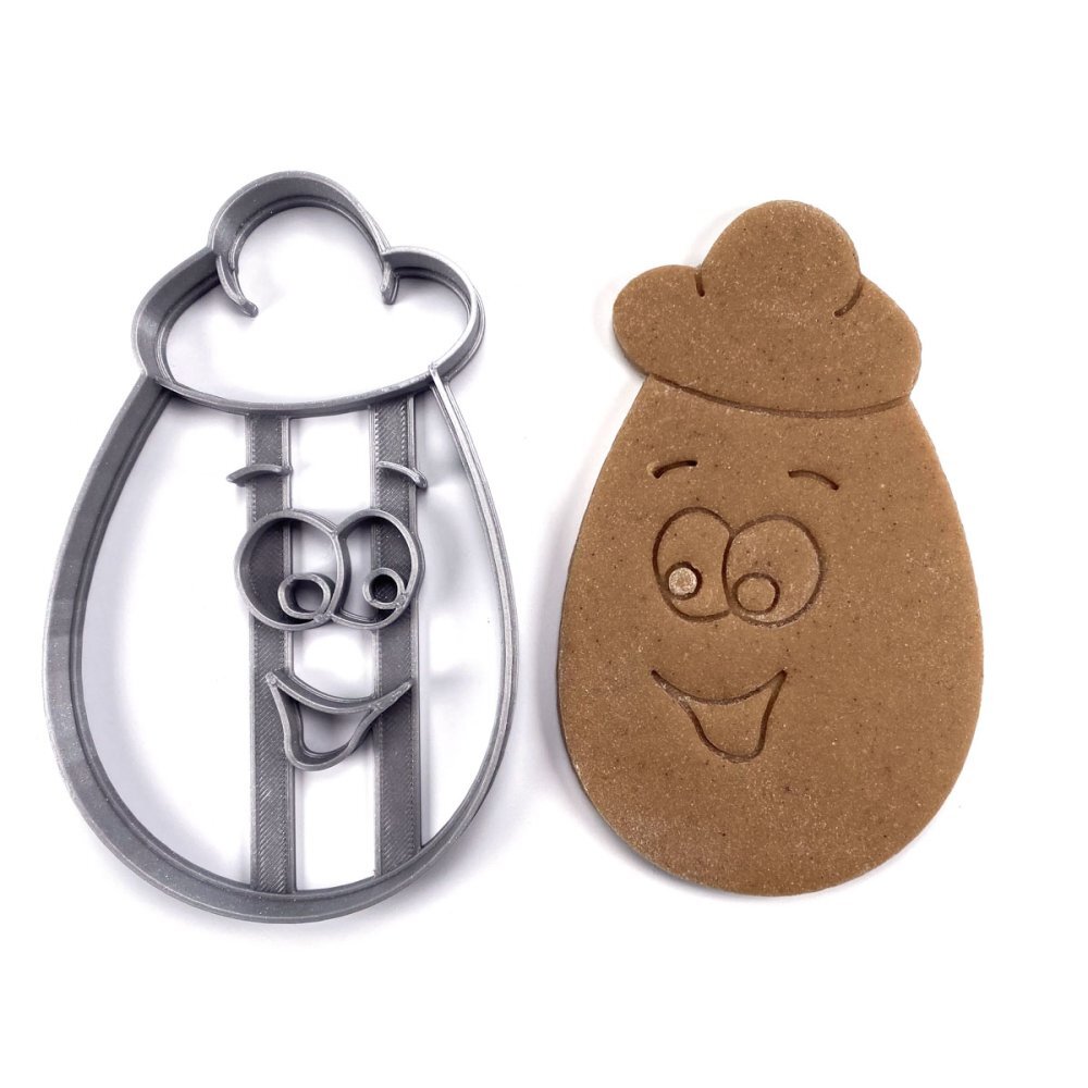 Vykrajovátko s velikonočním motivem vejce s kloboukem je zhotoveno na 3D tiskárně, z materiálu PLA plast (materiál biologicky odbouratelný), odolný do 50°C, nevhodný do myčky na nádobí. Pomocí středu se do hmoty otisknou linie, pomocí kterých se snadno zdobí. Vhodné pro hmoty jako je těsto (perníčkové, linecké, na sušenky), marcipán, fondán, plastelína, Play-Doh, Modurit, keramická hlína, Fimo apod. Před prvním použitím a vždy po použití vykrajovátko omyjte jarovou vodou a důkladně osušte. Pro snazší vykrajování těst je vhodné vykrajovátko nejprve vložit do misky s moukou. Nejsou určena pro děti do 3 let, hrozí odlomení malých částí.