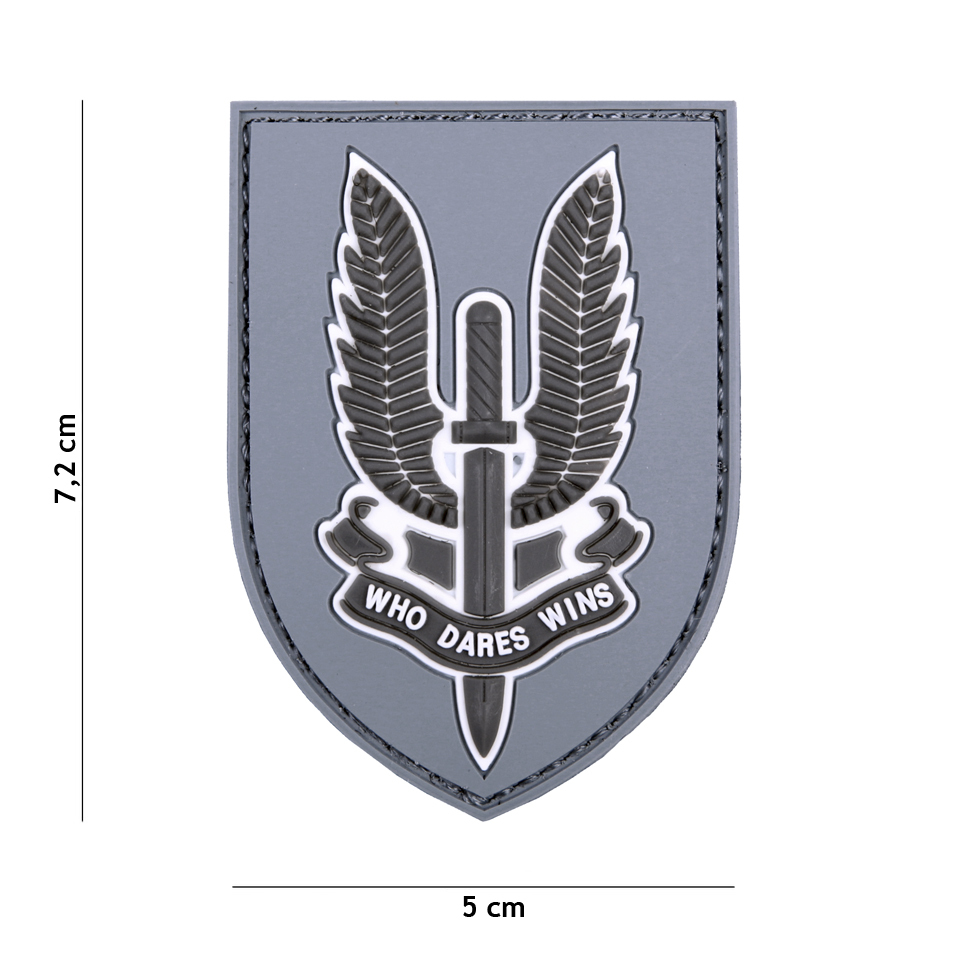 Gumová nášivka 101 Inc znak SAS Who Dares Wins - šedá