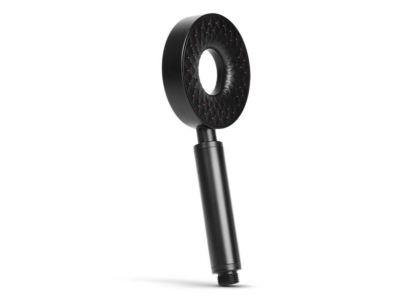Designová, moderně vypadající a zároveň praktická sprchová růžice se 3 typy vodního proudu. Jedinečný design s otvorem ve středu zaručeně učiní vaši koupelnu jedinečnou a trendy. Silikonem potažená hlava zabrání usazení vodního kamene. Otáčením rukojeti můžete přepínat mezi jednotlivými režimy.