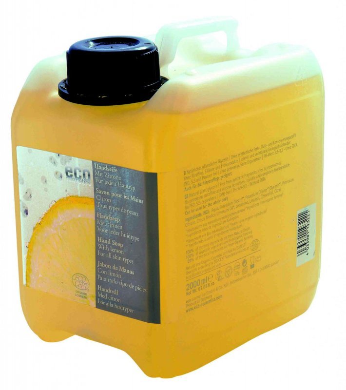 Všechny produkty Eco Cosmetics jsou 100% přírodní, v BIO kvalitě a mají přísnou certifikaci EcoCert. Značka je výjimečná tím, že podíl BIO surovin z rostlinných složek je 95 - 100 %, což v této cenové kategorii jinak nenajdete. Použité oleje a éterické oleje mají certifikaci Demeter biodynamického zemědělství. Jsou vyprodukovány CO2 neutrálně. A samozřejmě netestovány na zvířatech a neobsahují živočišné suroviny. Certifikáty:ECOCERT Cosmos Organic, Vegan Society, CO2 neutral Objem:2 l Podíl BIO rostlinných surovin:100 % Podíl BIO surovin z celkového objemu:10 % Podíl přírodních surovin:100 % Složení:Aqua, Citrus Limon Fruit Water*, Glycerin, Sodium Coco Sulfate, Coco-Glucoside, Lauryl Glucoside, Sodium Cocoyl Glutamate, Disodium Cocoyl Glutamate, Betain, Parfum, Hippophae Rhamnoides Fruit Oil*, Maris Sal, Citric Acid, Sodium PCA, Limonene, Citral, Země původu:Německo
