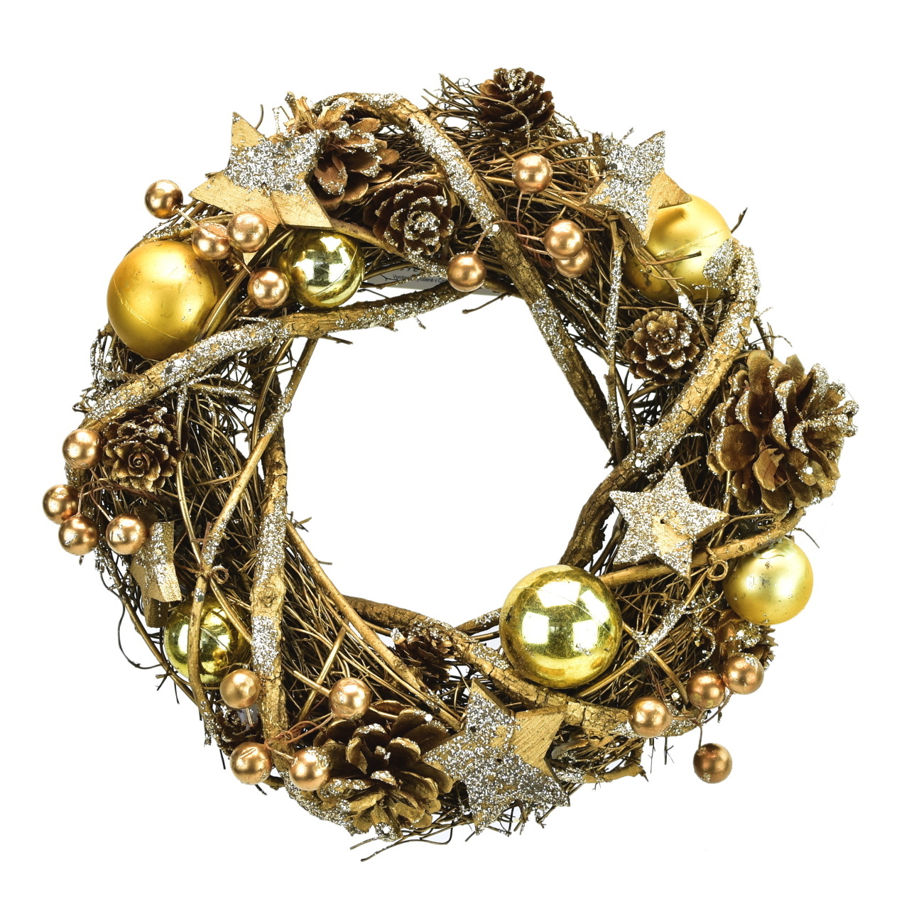 Věnec proutěný se zlatými dekoracemi Ø24 cm