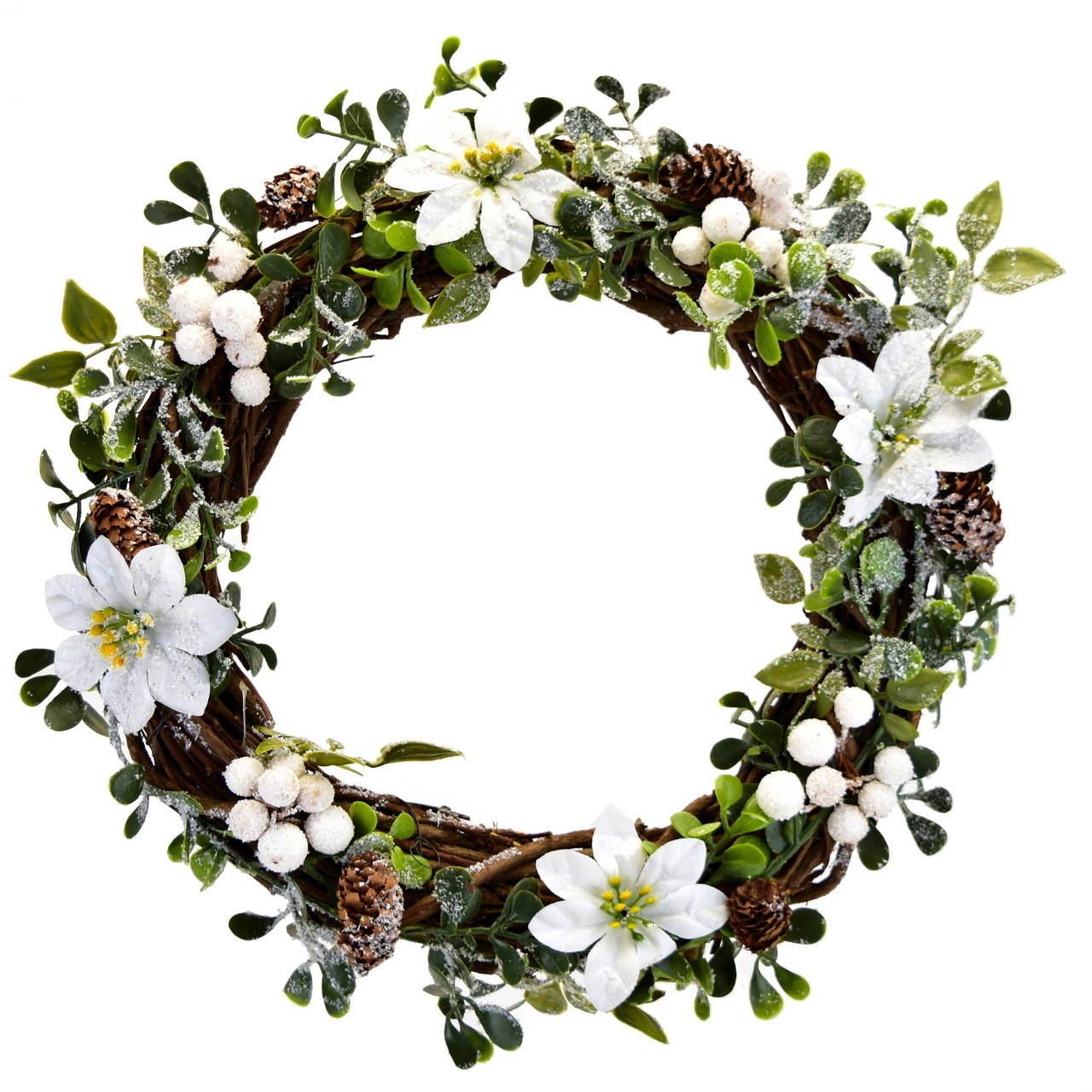Proutěný věnec s bílými ponsetiemi Ø33 cm