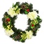 Podzimní věnec se světle žlutými chryzantémami je dokonalou výzdobou na podzimní období. Tento věnec je vyroben z umělého zeleného jehličí a je zdoben čtyřmi květy světle žlutých chryzantém, které doplňují zelené listy, šišky, a zelené větvičky s drobnými kvítky a červené květy růžiček. Jeho vnější průměr činí 35 cm.