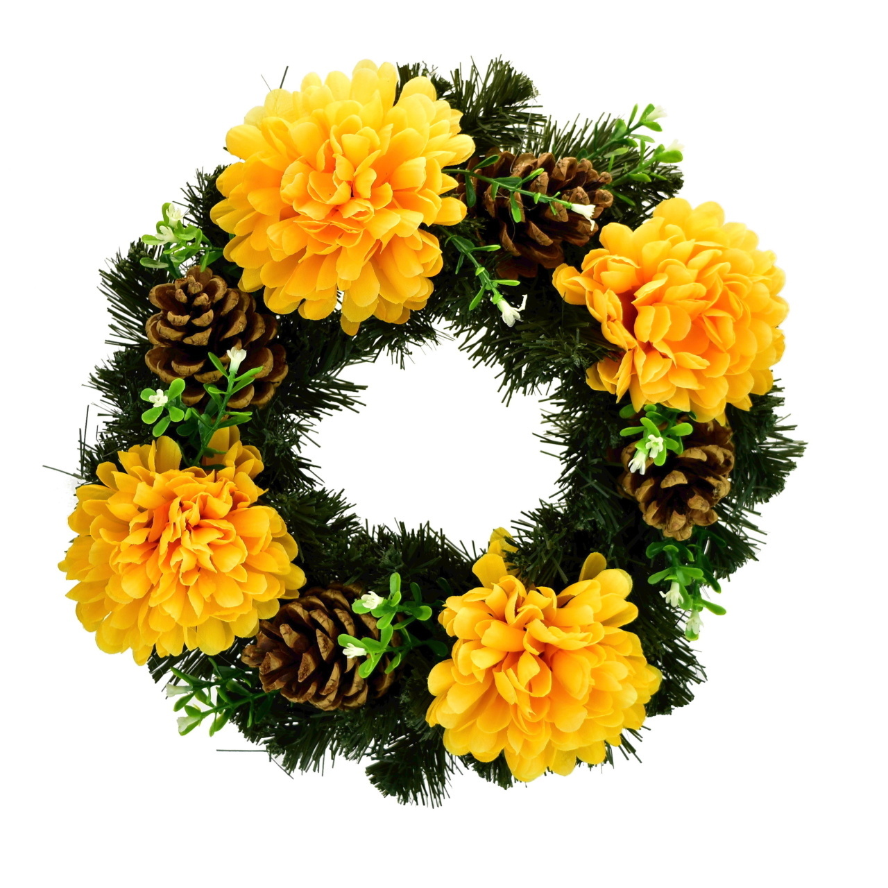 Dušičkový věnec se žlutými chryzantémami Ø30 cm