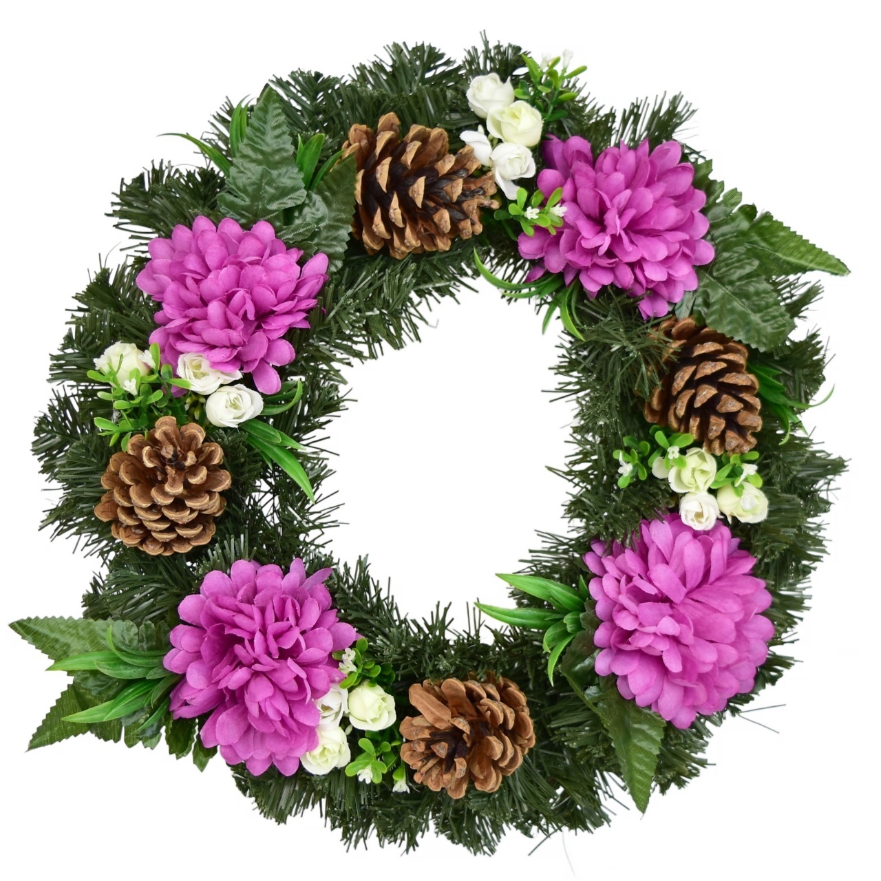Dušičkový věnec s fialovými chryzantémami Ø35 cm
