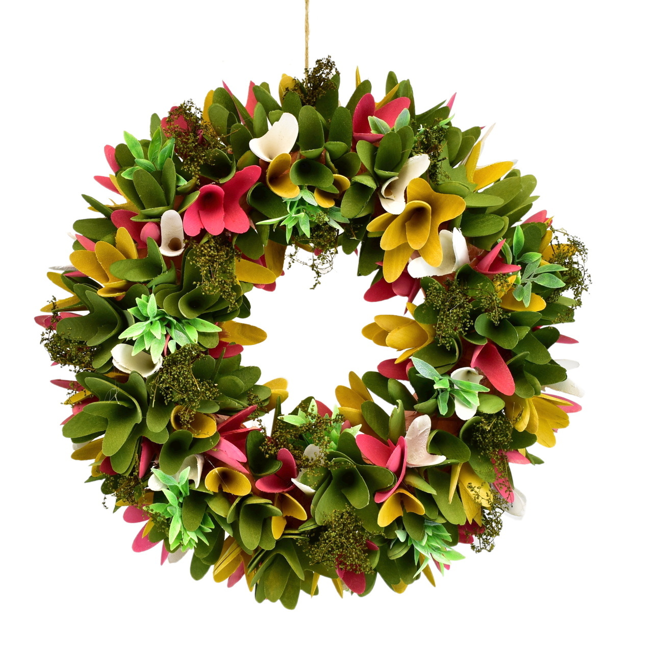 Svěže květinové motivy symbolizují blížící se jaro a dodají Vašemu domovu nebo místo setkání svěžest a život. Věnec má vnější průměr 30 cm, což představuje odpovídající velikost, která mu umožňuje upoutat pozornost a zároveň se snadno přizpůsobit různým dekoračním stylům.