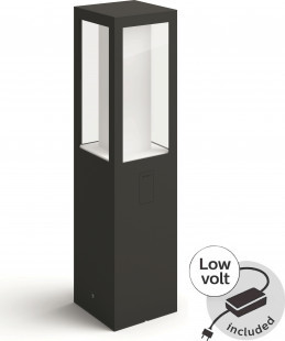 Malý venkovní sloupek Philips Hue Impress o výšce 40cm s nízkonapěťovým adaptérem je skvělou variantou pro jednoduchou instalaci v zahradě. Je dodáván s napichovacím trnem do země o délce 17 cm, s adaptérem a 2,9 m černým napájecím kabelem do venkovní zásuvky a 5 m černým prodlužovacím kabelem. Svítidlo je vyrobeno z kvalitního tlakově odlévaného hliníku v černé barvě v kombinaci s čirým sklem. Světlo vychází z integrovaného úsporného vysoce výkonného LED zdroje Hue White and Color Ambiance s až 16 milióny odstíny barev v nastavitelných intenzitách. Teplota bílého světla je volitelná ve 4 schématech od 2200K (žárovkové teplé bílé světlo pro odpočinek a relaxaci), přes 2700K (teplé bílé světlo vhodné na čtení), po 4000K (jasné denní světlo simulující polední svit pro práci a soustředění), až po 6500K (studené bílé světlo navozující energii). Anebo je možné nastavovat barevné světlo podle nálady. Vyžaduje připojení přes můstek Hue Bridge (není dodáván v balení) pro možnost ovládat svítidlo odkudkoli přes mobilní aplikace. Životnost zdroje je extrémně dlouhá až 25.000 hodin. Krytí IP44 značí voděodolnost a vhodnost pro použití ve vlhkém venkovním prostředí. Philips HUE Moderní technologie, mobilní aplikace a elegantní nadčasový stylový design, to je kolekce nepřekonatelných svítidel Philips HUE, která Vám zjednodušší život chytrým a užitečným způsobem. Pomocí jednoho dálkového ovladače můžete ovládat všechna domácí svítidla Philips HUE. Nastavujete si teplotu i intenzitu svitu jak přesně potřebujete. Nastavíte si takový odstín přírodního bílého světla na jaký máte zrovna chuť a náladu. Od uvolňujícího hřejivého bílého svitu vhodného na relaxaci nebo čtení až po chladné denní světlo plné energie. Navíc regulujete i intenzitu svitu pomocí garantovaného jemného ztlumení světla. Systém Philips HUE Vám usnadní i vstávání pomocí postupného zvyšování intenzity světla připomínající východ slunce. Vaše domácí osvětlení můžete ovládat i vzdáleně přes mobilní aplikaci. Nezáleží na tom kde zrovna jste. Pomocí technologie geofencing vás svitidla mohou přivítat, když se vracíte domů nebo se automaticky vypnou, když odcházíte. Můžete si funkcí rozvrhu v aplikaci Philips HUE nastavit, aby se svítidla ve vašem domě rozsvítila v určený čas a v noci, aby se postupně zhasínala. Hue Bridge můžete obskuhovat až 50 HUE LED zdrojů a až 10 příslušenství: HUE vypínač, HUE dálkový ovladač se stmívačem nebo HUE senzor pohybu. Krytí IP44 Venkovní svítidla jsou vyrobena speciálně pro vlhké venkovní prostředí s odolností proti vlivům počasí a jsou testována na voděodolnost. Označení krytí stupněm IP vyjadřuje dva údaje. Prvním stupněm ochrany proti prachu a druhým proti vodě. Svítidla s krytím IP44jsou chráněna proti vniknutí cizích pevných částic o průměru nad 1mm a proti stříkající vodě.