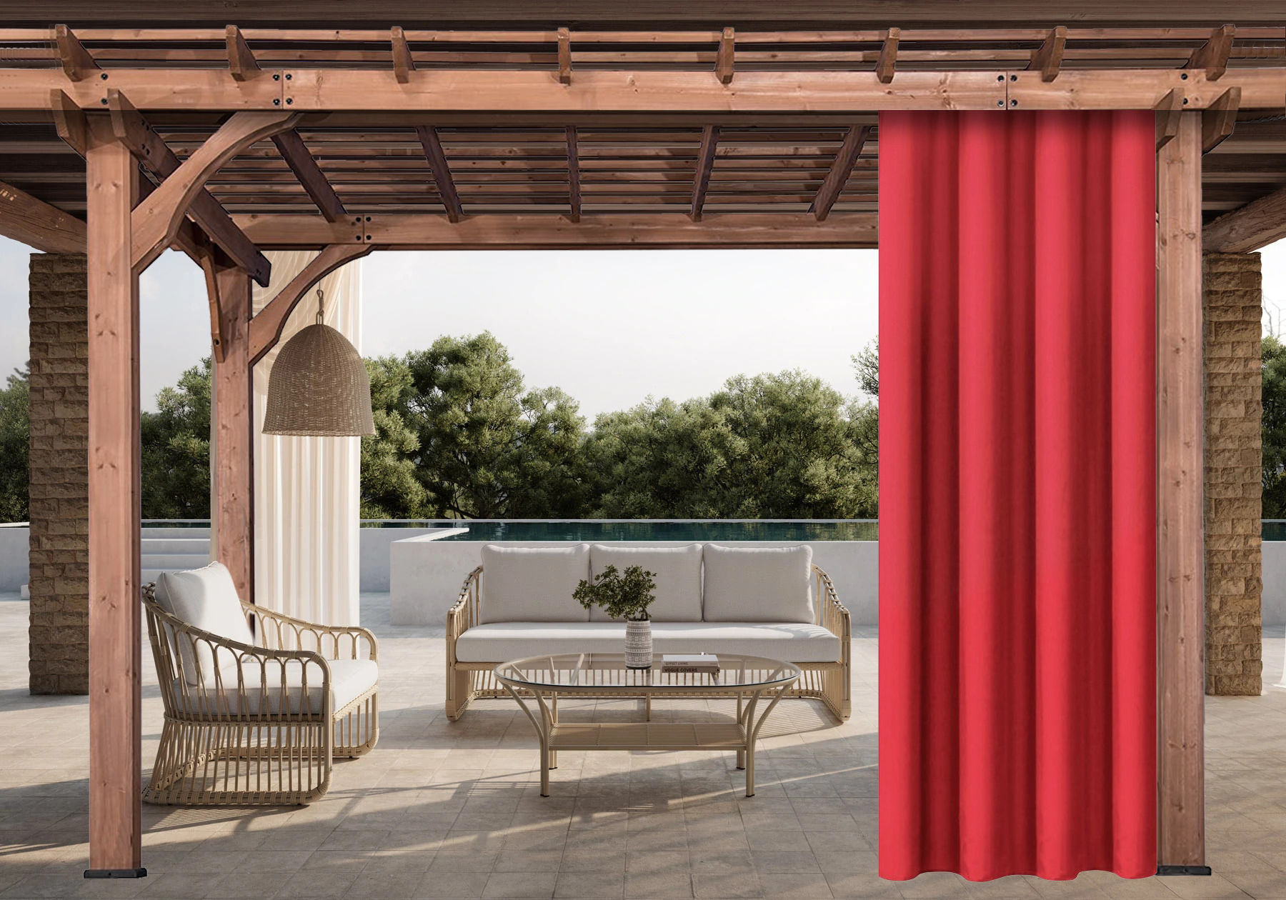 Venkovní zahradní závěsy vyráběné v různých vzorech a trendových barvách jsou nabízeny s kroužky nebo na tunýlek ve více rozměrech. Ideální volba pro Vaši pergolu nebo altán.