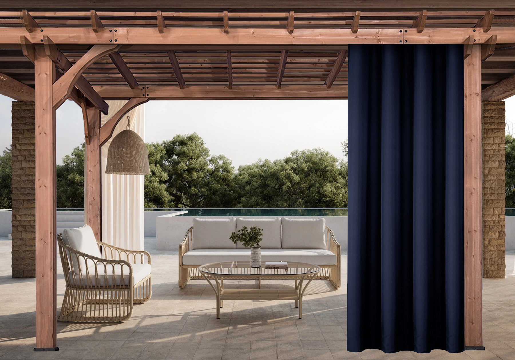 Venkovní zahradní závěsy vyráběné v různých vzorech a trendových barvách jsou nabízeny s kroužky nebo na tunýlek ve více rozměrech. Ideální volba pro Vaši pergolu nebo altán.