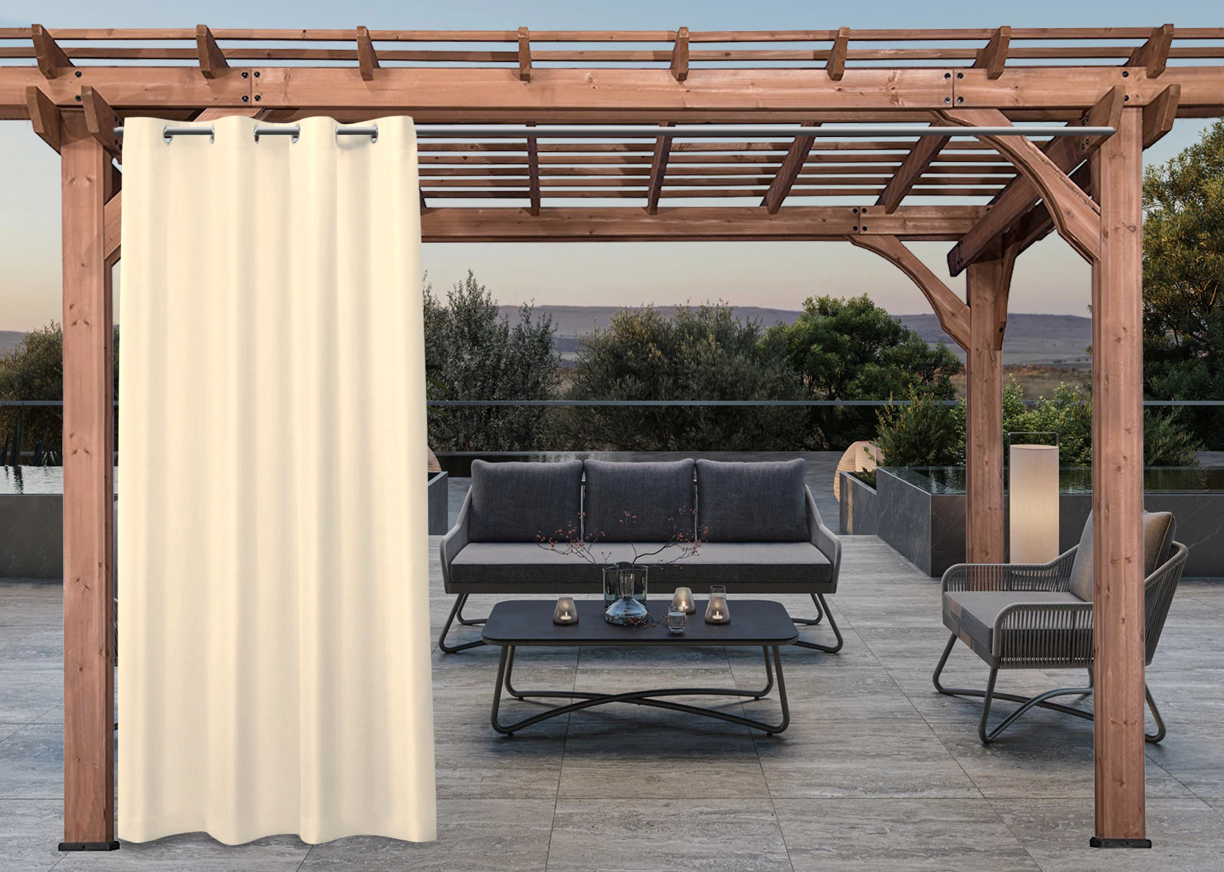 Voděodolný venkovní závěs s kroužky pro tyčovou gárnyž vyrobený z vysoce kvalitní látky je vhodný do pergoly, na balkón nebo do altánu. Závěs je odolný proti povětrnostním podmínkám, chrání před deštěm, eliminuje sluneční záření. Snáší nízké i vysoké teploty. Rozměr : šířka 155 cm, výška 200 cm. V ceně je úvaz ze stejné látky 5x155 cm. Složení 100% polyester - 191 g/m2, závěs má 8 kroužků.