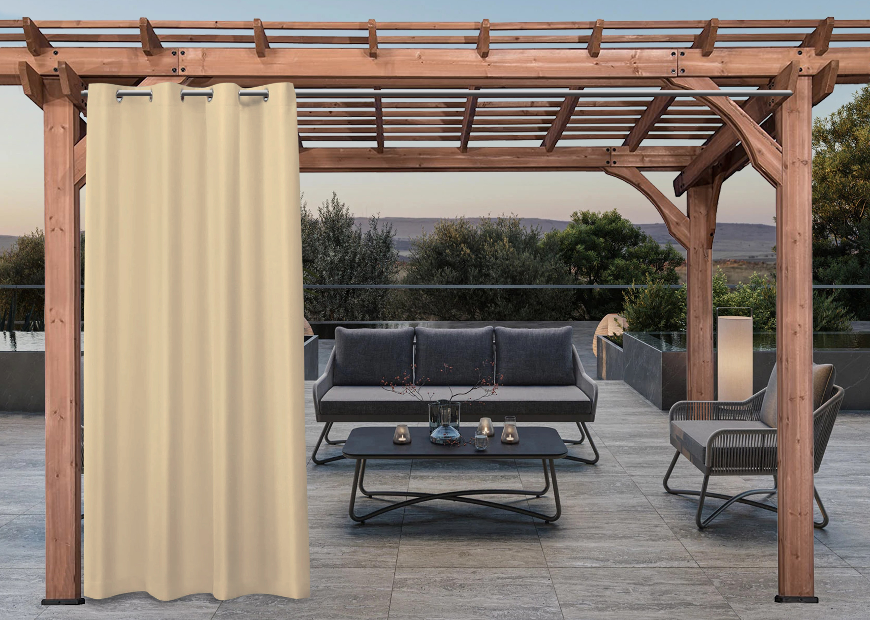 Voděodolný venkovní závěs s kroužky pro tyčovou gárnyž vyrobený z vysoce kvalitní látky je vhodný do pergoly, na balkón nebo do altánu. Závěs je odolný proti povětrnostním podmínkám, chrání před deštěm, eliminuje sluneční záření. Snáší nízké i vysoké teploty. Rozměr : šířka 155 cm, výška 220 cm. V ceně je úvaz ze stejné látky 5x155 cm. Složení 100% polyester - 191 g/m2, závěs má 8 kroužků.
