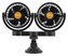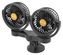 Napájení 24 V ze zásuvky autozapalovače. Ventilátory průměru 11 cm lze natočit díky kulovému kloubu a zároveň lze každý větrák zvlášť nasměrovat prakticky jakýmkoliv směrem díky otočnému mechanismu na stojanu.