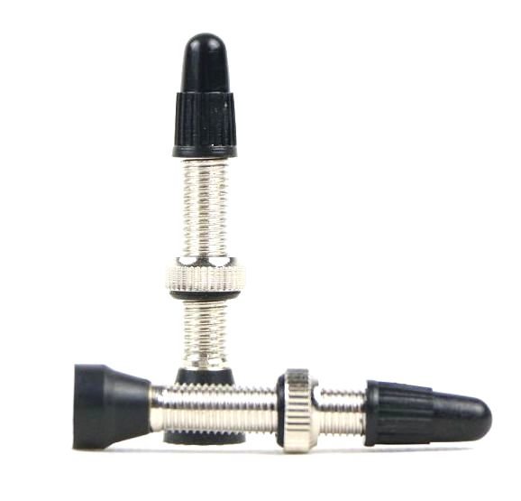 Sada obsahuje dva mosazné poniklované ventilky o délce 34mm s kulatým těsněním do ráfku, matkou a těsněním pod matku