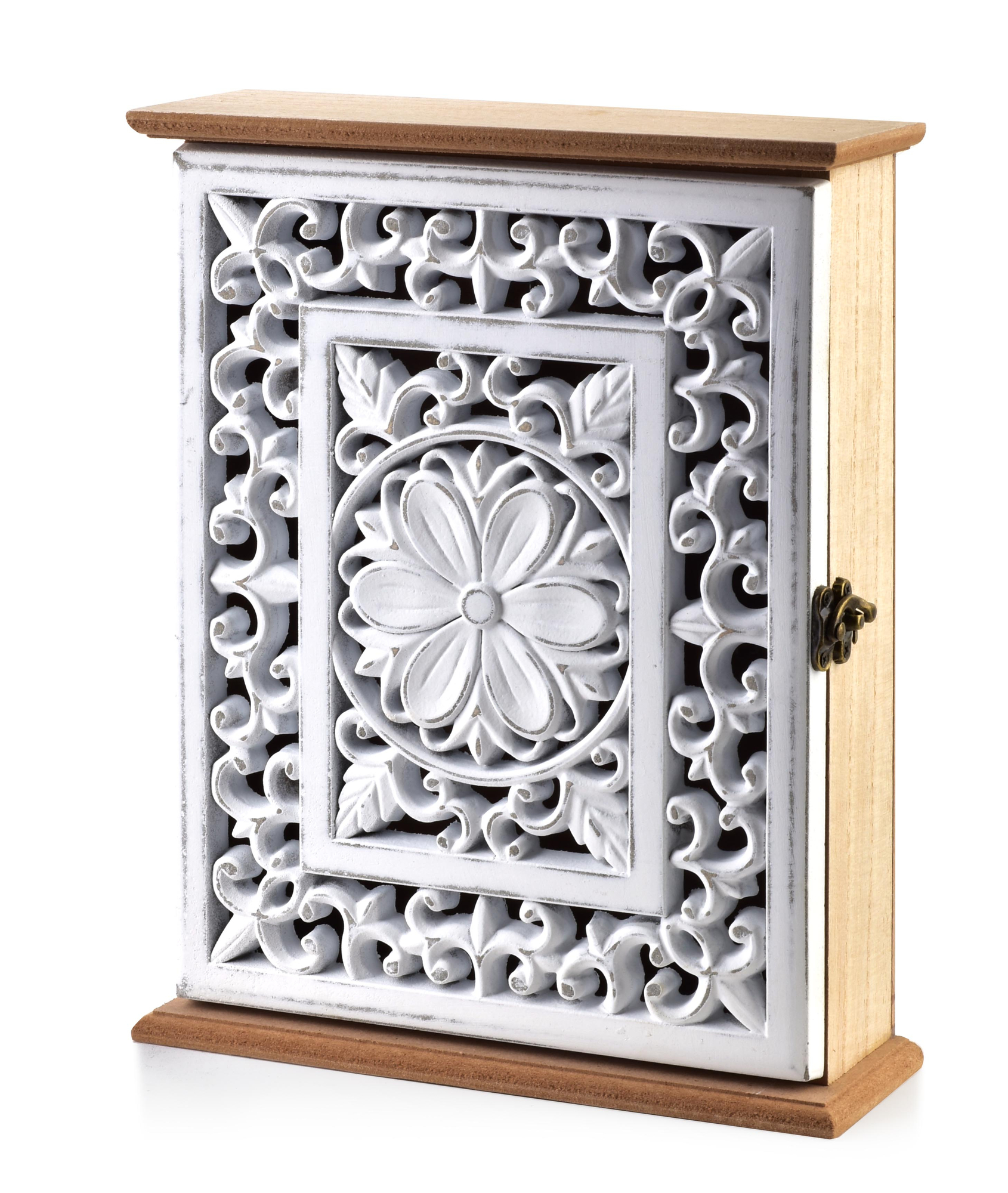Skrzynka na klucze STACY marki MONDEX since 1986r z drewna na 6kluczy to nie tylko praktyczne, ale również estetyczne rozwiązanie do przechowywania kluczy. Wykonana z naturalnego materiału, jakim jest drewno, wprowadza do wnętrza ciepło i styl, doskonale wpisując się w różnorodne aranżacje . od rustykalnych po nowoczesne. W środku skrzynki znajduje się sześć haczyków rozmieszczonych wrównych odstępach, wykonanych najczęściej z metalu, drewna lub tworzywa. Każdy haczyk jest wystarczająco mocny, aby utrzymać klucze, a przestrzeń wokół nich zapobiega plątaniu się breloczków. Skrzynka wykonana z litego drewna, często w naturalnym kolorze, z widocznym usłojeniem. Idealna do wnętrz wstylu wiejskim lub skandynawskim. Prosty i elegancki design, drewno malowane na biało, czarno lub w pastelowe odcienie. Możemieć geometryczne zdobienia. Solidna konstrukcja z ciemnego drewna, zdobiona delikatnymi rzeźbieniami lub metalowymi uchwytami. Taka skrzynka to świetne rozwiązanie, które pomaga zapanować nad bałaganem związanym z kluczami i jednocześnie dodaje charakteru wnętrzu. Jest praktyczna, trwała i pięknie prezentuje się na ścianie. Wymiary: 21,5x7x27cm
