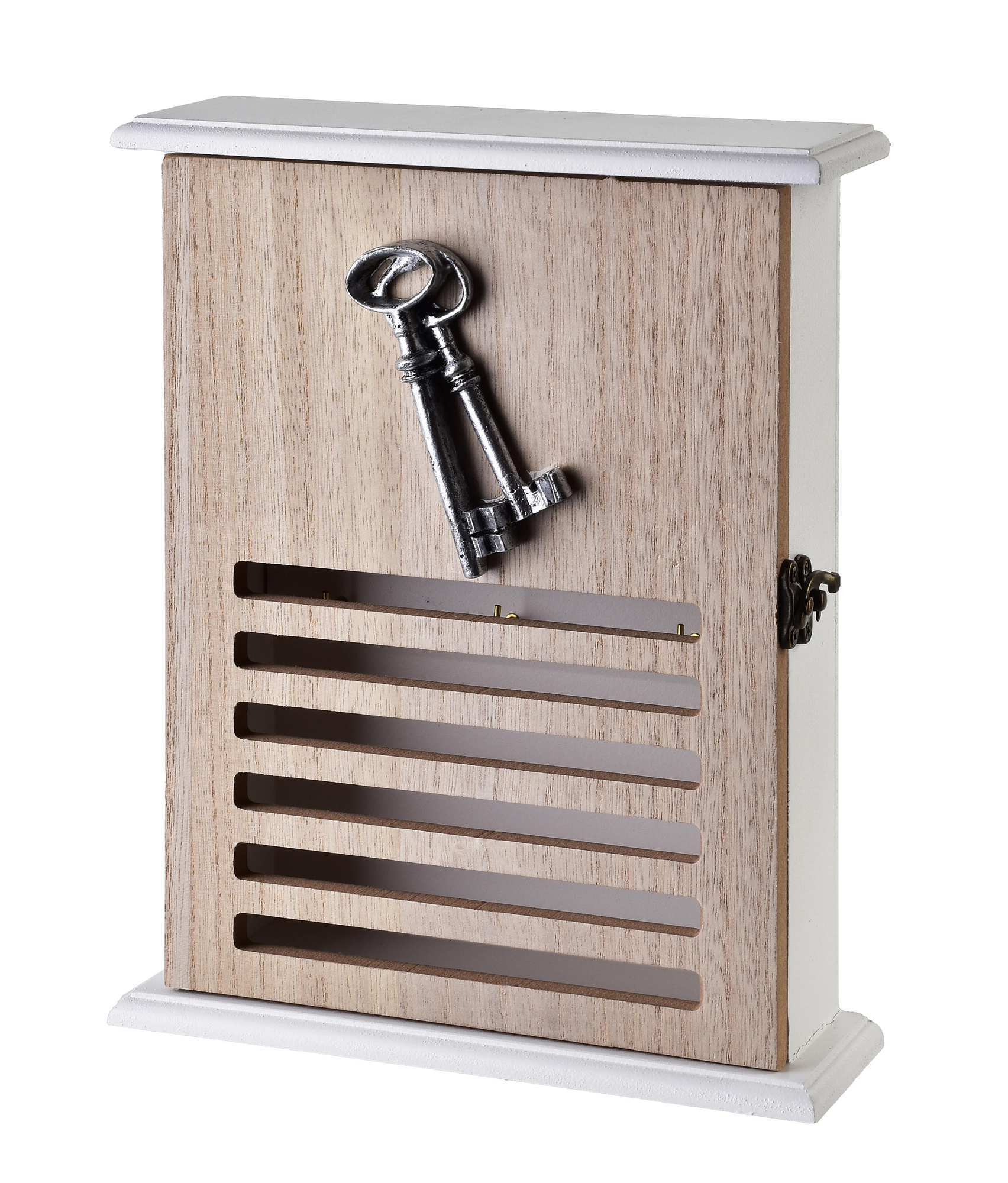 Skrzynka na klucze STACY marki MONDEX since 1986r z drewna na 6kluczy to nie tylko praktyczne, ale również estetyczne rozwiązanie do przechowywania kluczy. Wykonana z naturalnego materiału, jakim jest drewno, wprowadza do wnętrza ciepło i styl, doskonale wpisując się w różnorodne aranżacje . od rustykalnych po nowoczesne. W środku skrzynki znajduje się sześć haczyków rozmieszczonych wrównych odstępach, wykonanych najczęściej z metalu, drewna lub tworzywa. Każdy haczyk jest wystarczająco mocny, aby utrzymać klucze, a przestrzeń wokół nich zapobiega plątaniu się breloczków. Skrzynka wykonana z litego drewna, często w naturalnym kolorze, z widocznym usłojeniem. Idealna do wnętrz wstylu wiejskim lub skandynawskim. Prosty i elegancki design, drewno malowane na biało, czarno lub w pastelowe odcienie. Możemieć geometryczne zdobienia. Solidna konstrukcja z ciemnego drewna, zdobiona delikatnymi rzeźbieniami lub metalowymi uchwytami. Taka skrzynka to świetne rozwiązanie, które pomaga zapanować nad bałaganem związanym z kluczami i jednocześnie dodaje charakteru wnętrzu. Jest praktyczna, trwała i pięknie prezentuje się na ścianie. Wymiary: 20x6x26,5cm