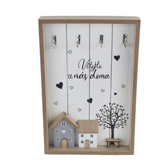 Box na klíče s nápisem - Vítejte u nás doma.Box na klíče je ve 2. jakosti, místy podřené, polepené, někde chybí i háčky.