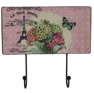 Krásný věšák se dvěma háčky, motiv - Hortenzie. Rozměry : 12 x 23 cm, celkově s věšáčky 21 cm. Materiál : kov číst celé