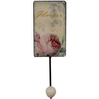Věšák s jedním háčkem, motiv- Růže. Rozměry : 7 x12 cm, celkově s věšáčkem 20,5 cm. Materiál : kov číst celé