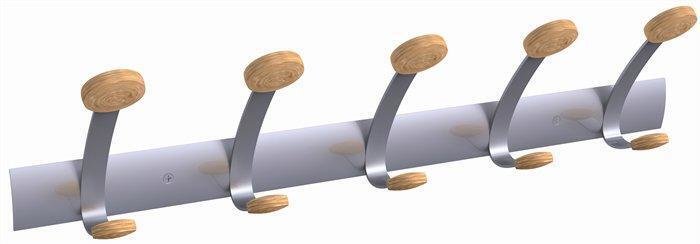 Věšák, stříbrná, na stěnu, kovový, 5 dřevěných háčků, ALBA