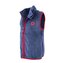 Dětská propínací chlupatá vesta v tmavě modré barvě. Stojací límec, dvě kapsy, barevné kontrastní lemy.
