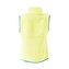 Dětská propínací chlupatá vesta v zelené barvě. Stojací límec, dvě kapsy, barevné kontrastní lemy.