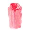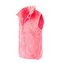 Dětská propínací chlupatá vesta v růžové barvě. Stojací límec, dvě kapsy, barevné kontrastní lemy.