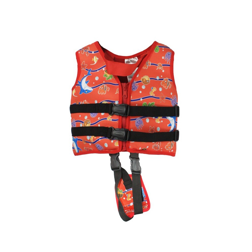 Barevná dětská plovací vesta pro neplavce, velikost L. Vesta má veselý potisk s postavičkami, zip a 2 popruhy pro bezpečné uchycení. Z vesty lze vyndavat polystyrenové vložky.