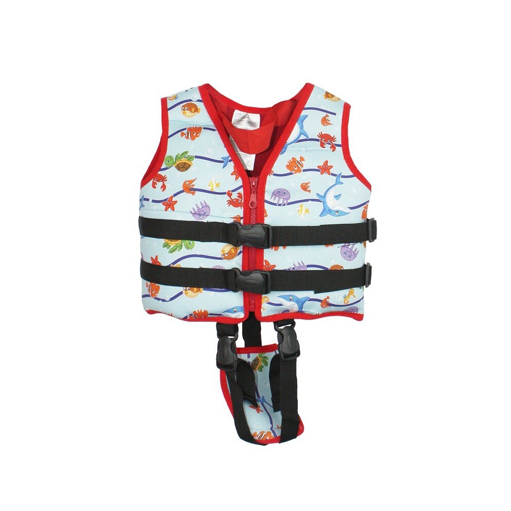 Barevná dětská plovací vesta pro neplavce, velikost L. Vesta má veselý potisk s postavičkami, zip a 2 popruhy pro bezpečné uchycení. Z vesty lze vyndavat polystyrenové vložky.