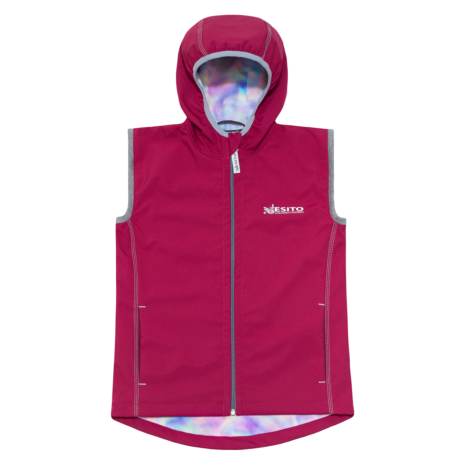 Softshellová vesta pro děti žijící nejen aktivním způsobem života. Vesta je dvojitě podšitá příjemnou bavlnou s elastanem s potiskem. Dívčí motiv potisku duhy. Vesta má 2 reflexní prvky při snížené viditelnosti formou kvalitních svítících termotransferů na předním díle i zádech. Softshellová vesta má prodloužená záda, pružnou kapuci, silné poutko na bezproblémové zavěšení i na široký věšák, velké krytí zipu a pohodlné velké kapsy, kam si dítě schová obě ruce.