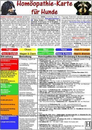 Homöopathie-Karte für Hunde, Tierheilkunde-Karte (německy)