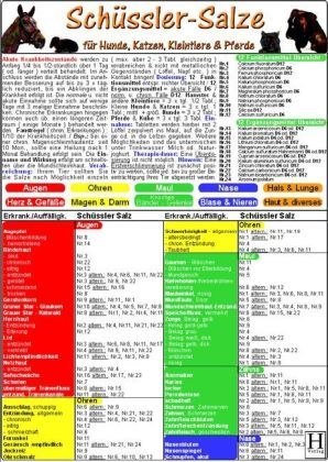 Schüssler-Salze für Hunde, Katzen, Kleintiere & Pferde, Tierheilkunde-Karte (německy)