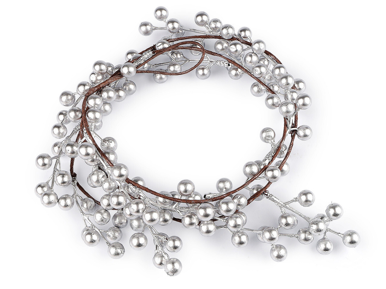 Umělá větvička / girlanda jeřabin - 1 ks - 2 stříbrná