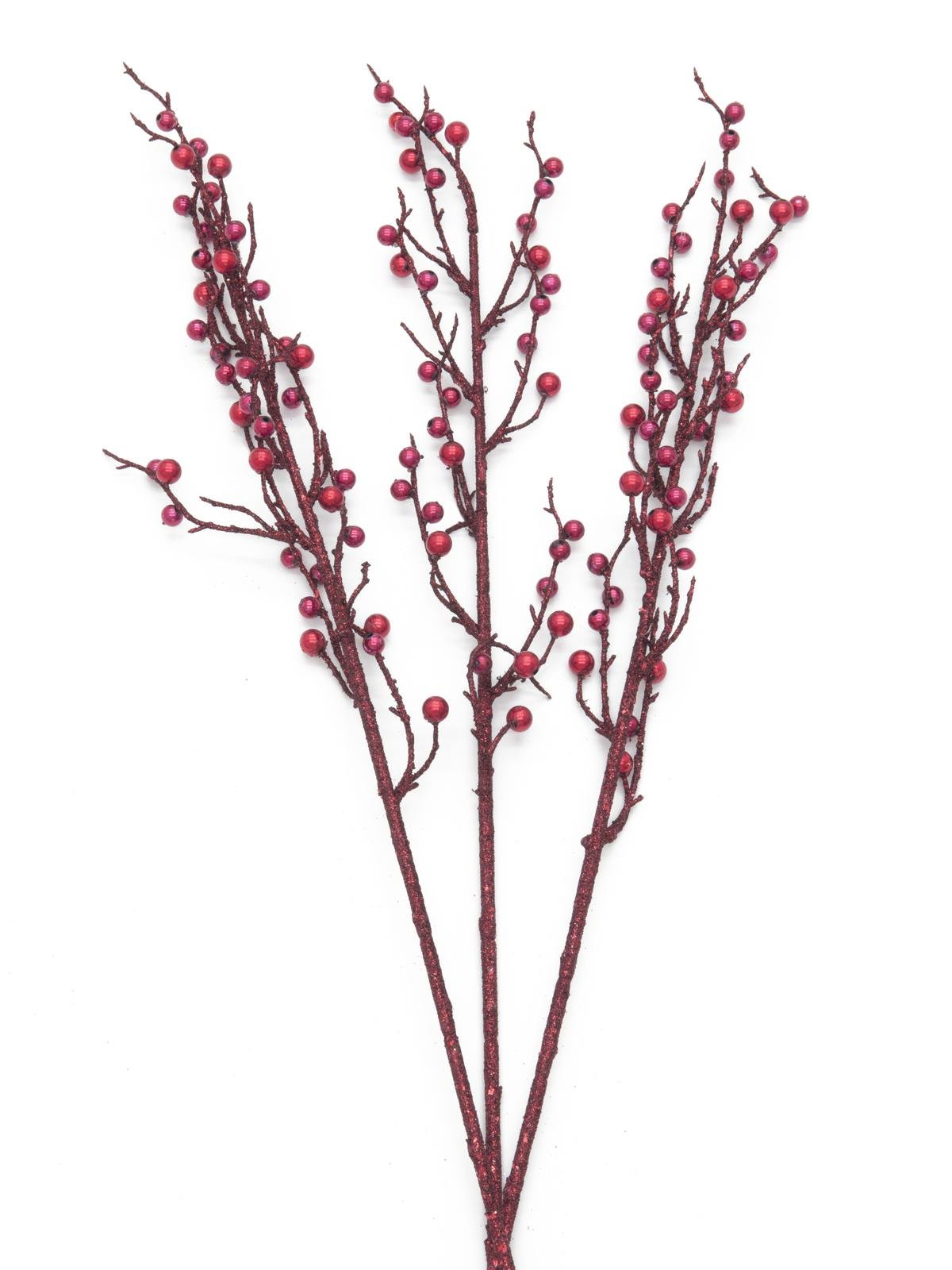 Větvička s bobulemi, červený glitter, 85 cm, 3ks
