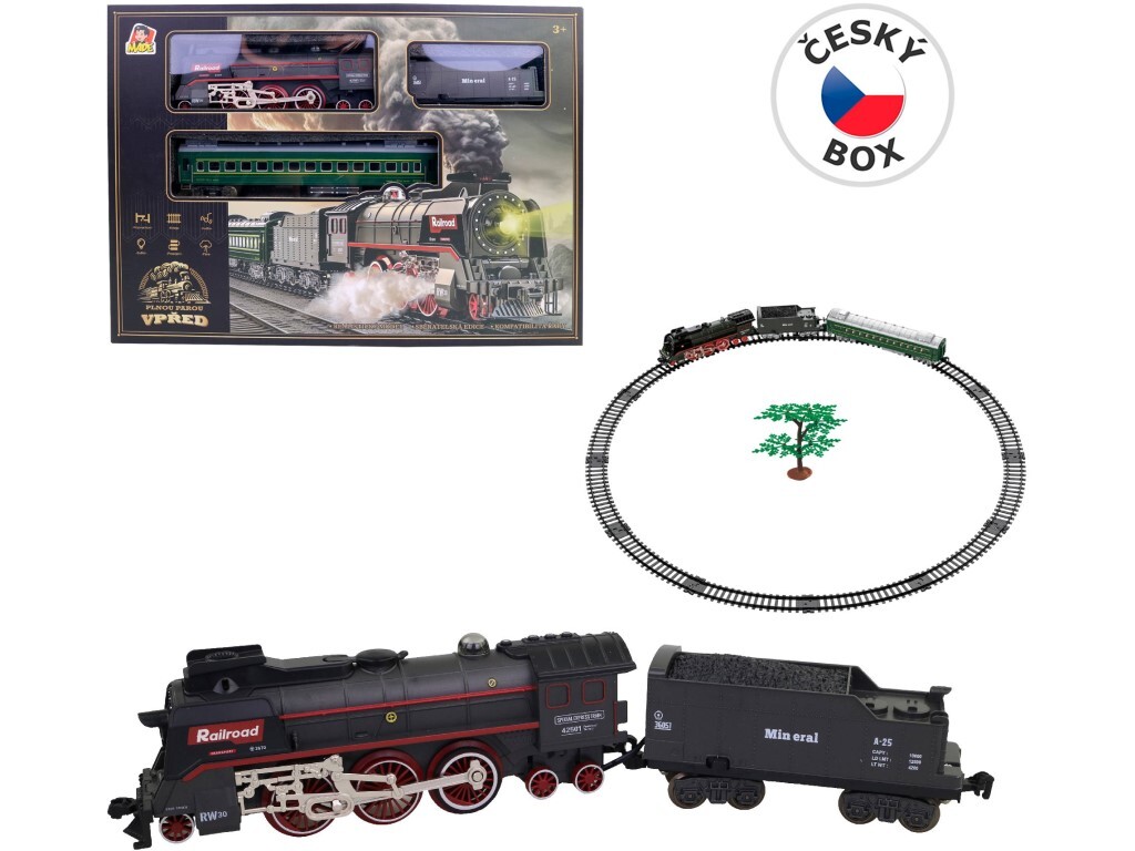 Vlaková souprava, parní lokomotiva, na baterie, světlo a zvuk, 92 x 92 cm