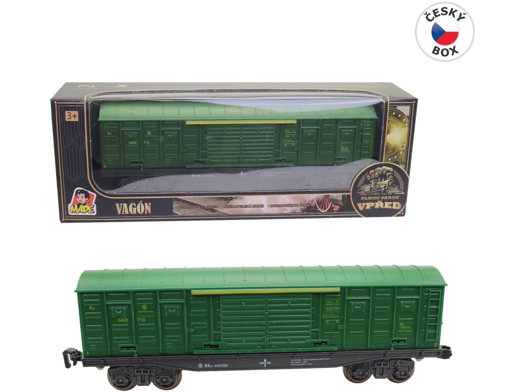 Vagón, krytý, 25 cm. Rozšiř si svou železniční stanici o tolik vagónů kolik jen budeš chtít. Správnou volbou je realisticky vyhlížející krytý vagón v zelené barvě. Hračka je určena pro děti 3+. Rozměr hračky je 24,8 x 4,7 x 7,6 cm. Rozměr balení: 28 x 6 x 10 cm. Materiál hračky je plast. Balení hračky je window box. Produkt je určený pro kohokoliv.