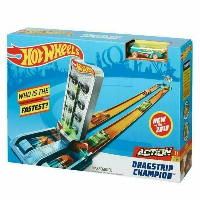Hot Wheels Dragstrip Champion™ je kompletní závodní sada, která spojuje přesnost a adrenalin. Poprvé mohou děti své autíčko poslat do driftu místo přímé jízdy z brány, což otevírá zcela nové možnosti závodění a strategie. Nastavitelné vlajky přidávají další prvek zábavy a soutěživosti.