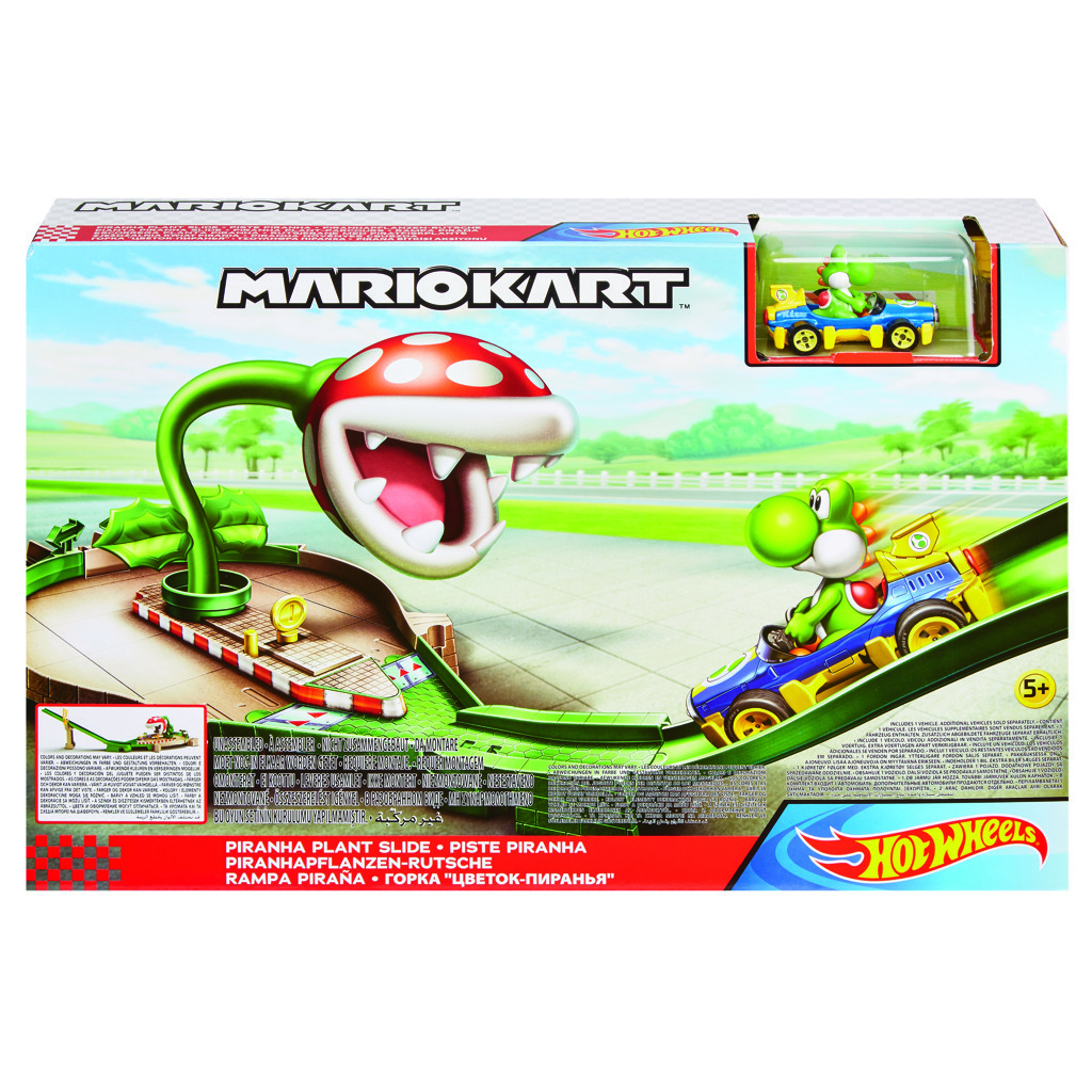 Tato kolekce závodních drah kombinuje kultovní postavičky z oblíbenézávodní hry Mario Kart a vzrušení z rychlé jízdy a kaskadérskýchkousků, které s sebou přináší závodní dráhy Hot Wheels®. V každémherním setu na tebe čeká postavička z Mario Kart v podobě angličáku HotWheels®.