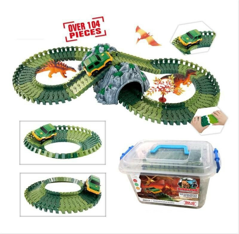 Variabilní dráha s dinosaury a tunelem, která má 104 dílů.Součástí sady je jedno autíčko, tunel, 3 pravěká zvířata a jinédoplňky. Provoz této sady je na 2×1,5V AA baterie - nejsou součástíbalení. Tato dráha je velice jednoduchá na sestavení. číst celé