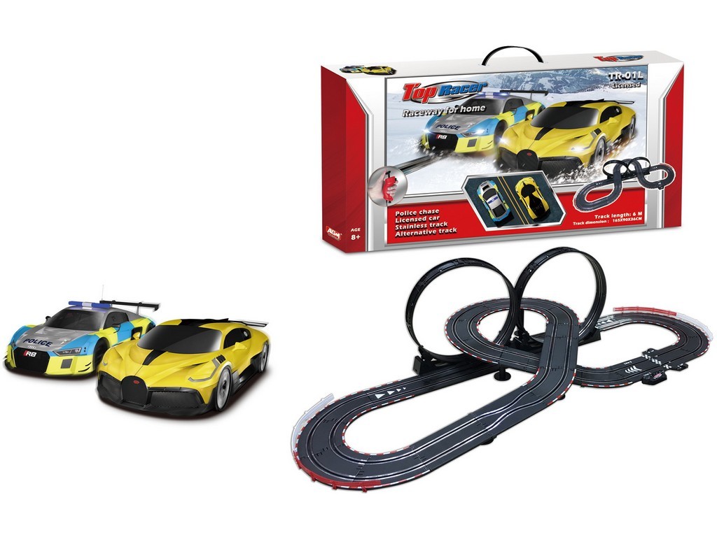 Autodráha s lopingy, Audi, Bugatti, 600 cmHračka je určena pro děti 8+.Rozměr hračky je 165 x 90 x 36 cm.Materiál hračky je plast.Balení hračky je box.Produkt je určený pro kluky.Ke zprovoznění produktu jsou potřeba ADAPTER baterie. číst celé