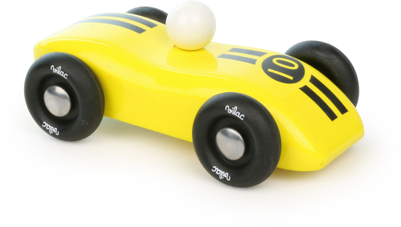 Závodní auto vyrobeno z lakovaného dřeva ve žluté barvě, s masivními gumovými koly. Je vhodné jak ke hraní tak jako dekorace do pokojů dětí či dospělých. Vyrobeno ve Francii. Hračky Vilac mají značku francouzské agentury ADEME, to znamená, že tyto dřevěné hračky jsou vyráběny ekologicky. Šetří životní prostředí, neznečišťují půdu, vodu a vzduch, neplýtvají energiemi. Již více než 100 let plní značka Vilac dětské sny. Společnost Vilac sídlí hluboko v srdci pohoří Jura, obklopena horami, jezery a lesy. Tato francouzská společnost vyrábí od roku 1911 dřevěné hračky v klasickém, starodávném stylu s moderními barvami a vzory. Hračky Vilac jsou jedinečné, nikdy nevyjdou z módy a dokáží okouzlit všechny generace. Vilac pomáhá utvářet dětskou představivost svými radostnými ilustracemi či dizajny a reinterpretací klasických hraček, které se jen tak neopotřebují. Děti dostávají na Vánoce a narozeniny spousty hraček, většina z nich je však nezaujme na dlouhou dobu, láska k hračce se nenaplní. Dřevěné hračky Vilac vzbuzují vášeň i o 50 let později, když jako dospělí náhodou najdete v podkroví hračky, které jste jako děti milovali. Vilac již 100 let propojuje děti s hračkami, které si oblíbí a váží si jich. A proč je děti tak milují? To zůstává tajemstvím firmy Vilac.