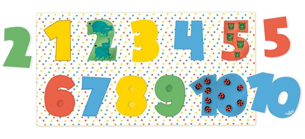 Barevné dřevěné vkládací puzzle čísel od 1 do 10. Deset číslic po jejichž odebrání děti uvidí barevný vzor, dle kterého budou vědět kam jaké číslo patří. Hračky Vilac mají značku francouzské agentury ADEME, to znamená, že tyto dřevěné hračky jsou vyráběny ekologicky. Šetří životní prostředí, neznečišťují půdu, vodu a vzduch, neplýtvají energiemi. Již více než 100 let plní značka Vilac dětské sny. Společnost Vilac sídlí hluboko v srdci pohoří Jura, obklopena horami, jezery a lesy. Tato francouzská společnost vyrábí od roku 1911 dřevěné hračky v klasickém, starodávném stylu s moderními barvami a vzory. Hračky Vilac jsou jedinečné, nikdy nevyjdou z módy a dokáží okouzlit všechny generace. Vilac pomáhá utvářet dětskou představivost svými radostnými ilustracemi či dizajny a reinterpretací klasických hraček, které se jen tak neopotřebují. Děti dostávají na Vánoce a narozeniny spousty hraček, většina z nich je však nezaujme na dlouhou dobu, láska k hračce se nenaplní. Dřevěné hračky Vilac vzbuzují vášeň i o 50 let později, když jako dospělí náhodou najdete v podkroví hračky, které jste jako děti milovali. Vilac již 100 let propojuje děti s hračkami, které si oblíbí a váží si jich. A proč je děti tak milují? To zůstává tajemstvím firmy Vilac.