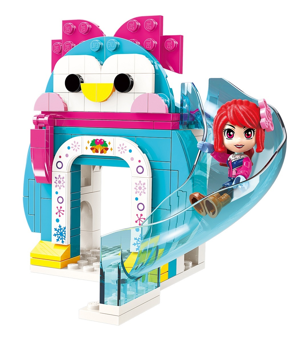 Abyste mohli sjet ledovou skluzavku, musíte nejprve vystoupat schody velké sovy. Vyrobeno z netoxického ABS plastu, v balení 140 dílků.