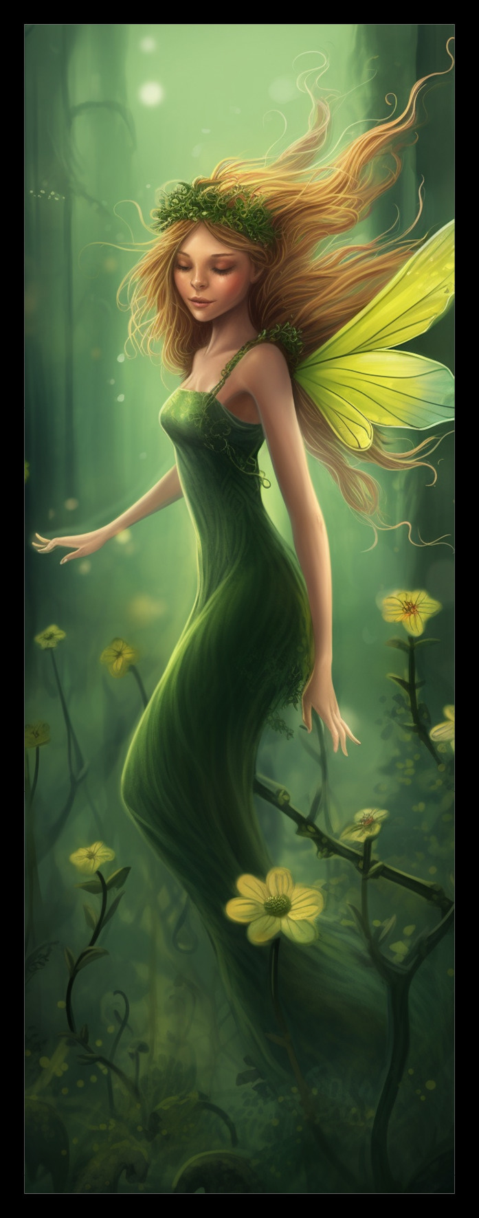 V útulném zeleném háji, kde tráva jemně šumí a sluneční paprsky pronikají mezi stromy, žije Travní víla ze série Víly. Její přítomnost spojuje všechny krásy přírody - louky plné květin, svěží trávu a světlé paprsky, které oživují každý kout. Travní víla svým zpěvem probouzí život v trávě a květinách a přináší klid, který okouzlí každého, kdo si tuto záložku vybere. Je symbolem jednoduchosti, spojení s přírodou a harmonie, kterou můžete mít i vy stále při sobě při vašem čtení.