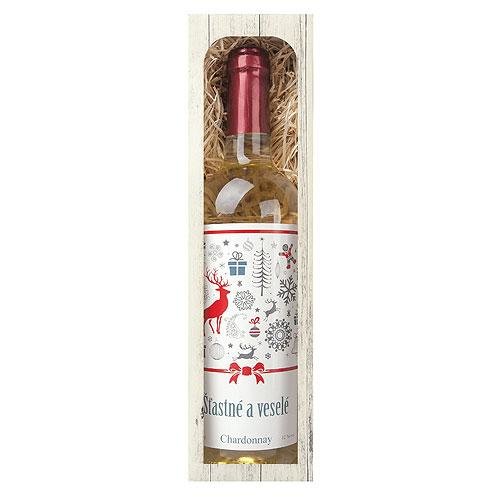 Bohemia Gifts Vánoční víno 0,75 l - Šťastné a veselé - Chardonnay