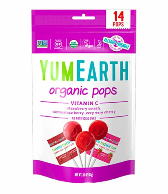 YumEarth Ovocná lízátka s vitamínem C s příchutí jahody, třešně a lesních plodů BIO 14 ks