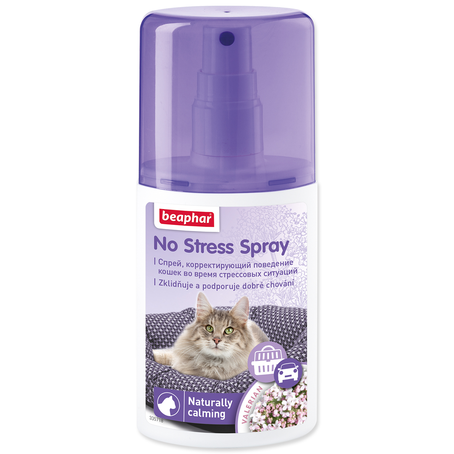 No Stress Spray rozptyluje kočky nacházející se ve stavu stresu nebo úzkosti a odvádí jejich pozornost od stresových faktorů a soustřeďuje je na předměty ošetřené sprejem.